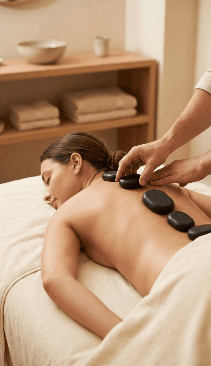 Warme Steine und achtsame Berührungen helfen dir, Stress loszulassen und neue Ruhe zu finden.